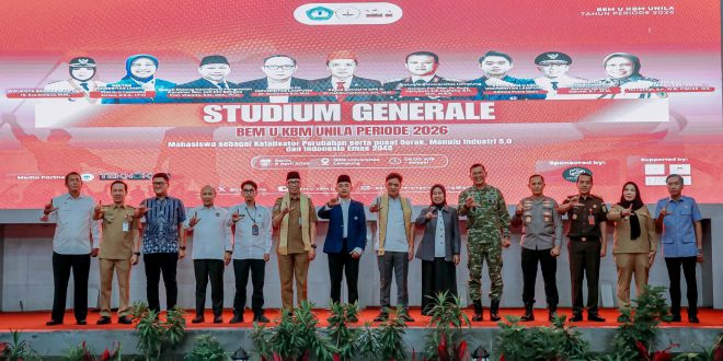Bandar Lampung (sundalanews.com) – Gubernur Lampung, Rahmat Mirzani Djausal, menegaskan komitmen Pemerintah Provinsi Lampung untuk membuka ruang kolaborasi dengan mahasiswa dalam segala aspek pembangunan. Hal tersebut disampaikannya dalam kegiatan Stadium General BEM Universitas Lampung (Unila) Periode 2026 yang mengusung tema ‘Mahasiswa sebagai Katalisator Perubahan serta Pusat Gerak Menuju Industri 5.0 …