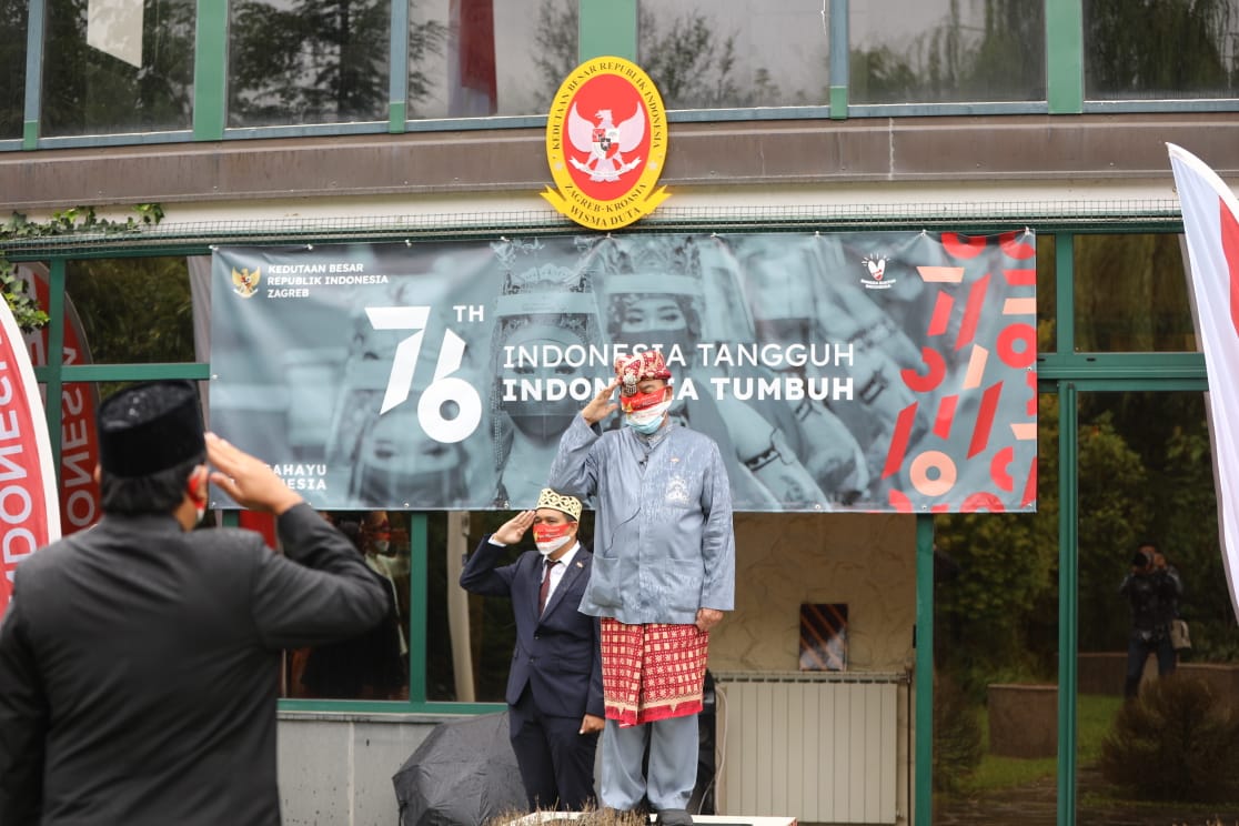 Acara digelar pada hari Selasa (17/08/2021). Upacara Bendera langsung dipimpin oleh Dubes RI untuk Kroasia HE Sjachroedin Zainal Pagaralam yang bertindak sebagai Pembina Upacara mengenakan pakaian adat Daerah Lampung.