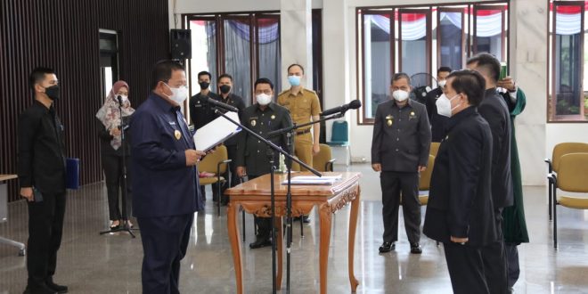SUNDALANEWS.COM – Gubernur Lampung Arinal Djunaidi melantik dan mengambil sumpah jabatan pejabat tinggi pratama dan widyaiswara di Lingkungan Pemerintah Provinsi Lampung, di Mahan Agung, Bandarlampung, Senin (9/8/2021).
