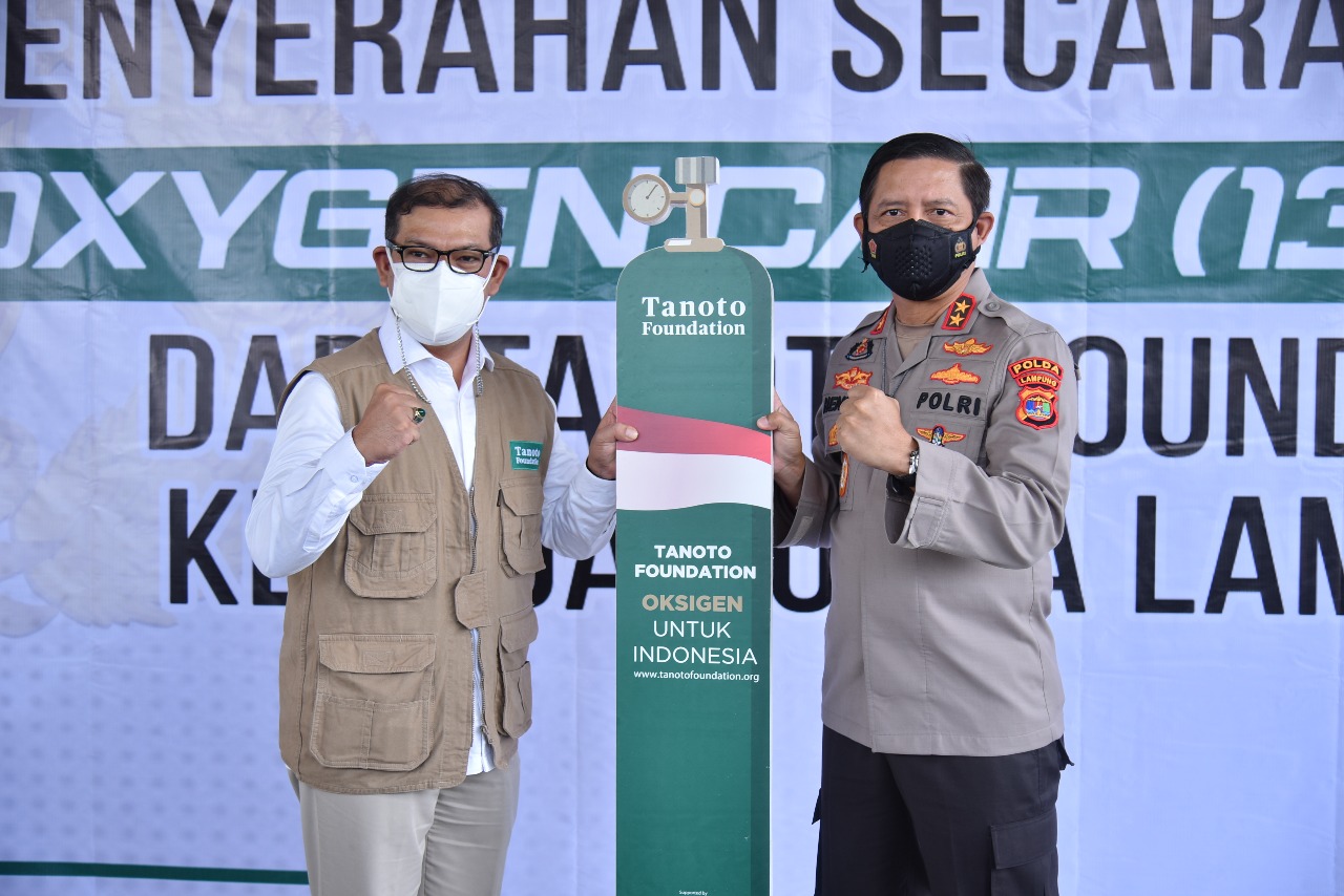 Pada kesempatan yang sama, Ari Gudadi selaku Direktur Eksternal Affairs mengatakan, kami dari Tanoto Foundation menghibahkan dan mendonasikan 13,5 ton oksigen liquid bagi masyarakat Lampung melalui bapak Kapolda Lampung yang kemudian akan di distribusikan ke rumah sakit dan masyarakat Lampung yang membutuhkan.