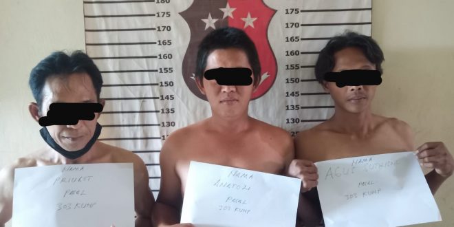SUNDALANEWS.COM – TEKAB 308 Sat Reskrim Polres Lampung Utara meringkus tiga orang terduga pelaku judi kartu (Leng) dalam penggerebekan pada Sabtu 12/9/2021 semalam pukul 23.30 wib di sebuah rumah “S” Gang Jalaba Kelapa Tujuh Kecamatan Kotabumi Selatan.