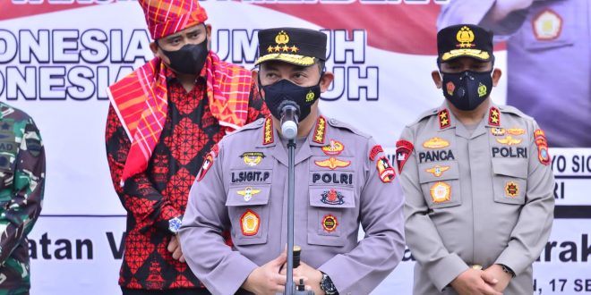 SUNDALANEWS.COM – Panglima TNI Marsekal Hadi Tjahjanto dan Kapolri Jenderal Listyo Sigit Prabowo meninjau kegiatan vaksinasi serentak di 31 titik kab/kota di seluruh Provinsi Sumatera Utara (Sumut), Jumat (17/9/2021).