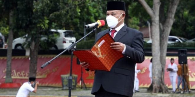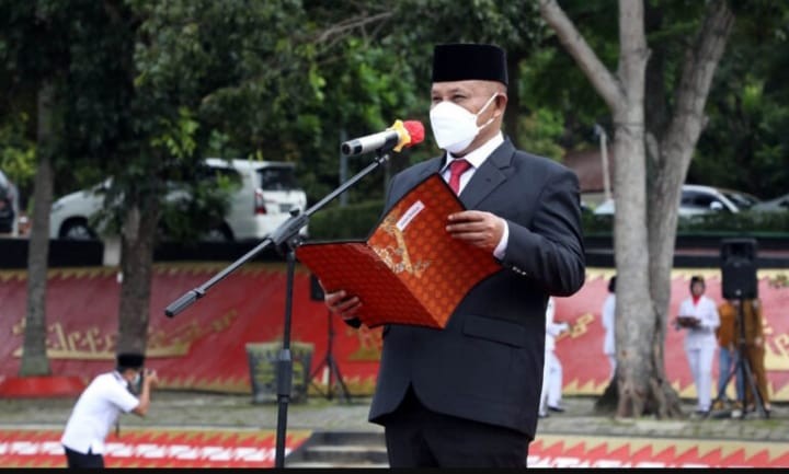 LAMPUNG SELATAN (Sundalanews.com): Bupati Lampung Selatan Nanang Ermanto memimpin upacara bendera, peringatan Hari Amal Bhakti (HAB) ke-76 Kementerian Agama Tahun 2022 di Kantor Kementerian Agama Lampung Selatan, Senin (3/1/2022). Upacara diawali pengibaran bendera merah putih oleh Paskibraka dari siswa-siswi dibawah di lingkungan Kantor Kementerian Agama Lampung Selatan.