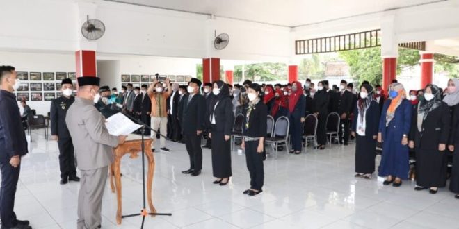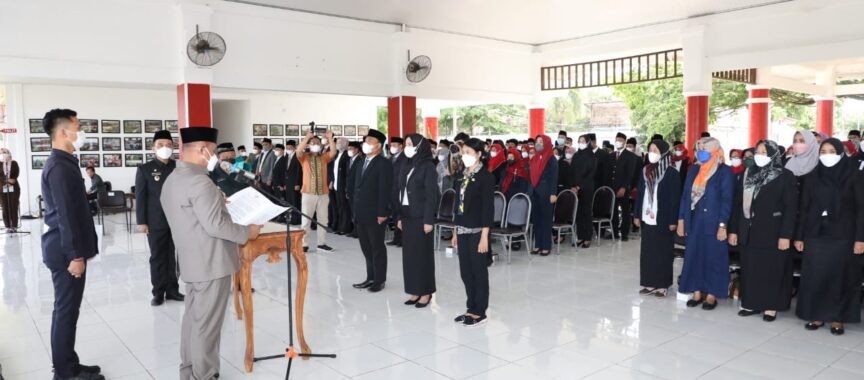 LAMPUNG SELATAN (Sundalanews.com): Bupati Lampung Selatan Nanang Ermanto melantik dan mengambil sumpah janji 195 Pejabat Fungsional, hasil penyetaraan jabatan di lingkungan pemerintah daerah. Pelantikan tersebut, berdasarkan Surat Keputusan Bupati Lampung Selatan Nomor 821/1120/V.05/2021 tentang pengangkatan pejabat administrasi ke dalam jabatan fungsional.