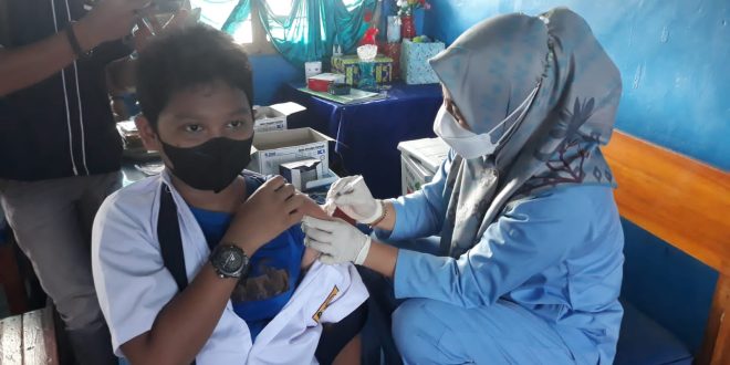 Lampung Utara (SUNDALANEWS.COM) – Untuk menerapkan Belajar Tatap muka Sekolah dan puskesmas Melaksanakan vaksin di SMP NEGERI 1 KOTABUMI,hari ini ada 255 siswa/siswi smp negeri 1 kotabumi yang melaksanakan Vaksin tahap l dan II, Selasa (25/01/2022).