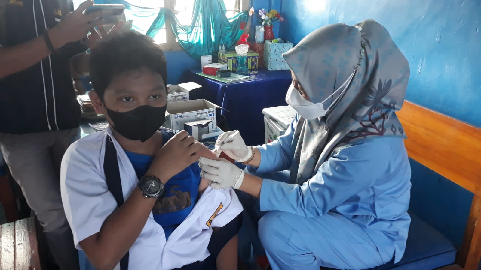 Dari tanggal 24 Januari 2022 vaksinasi tahap l dan tahap ll siswa/siswi yang telah divaksin 373 murid dari kelas 7,8,sampai 9