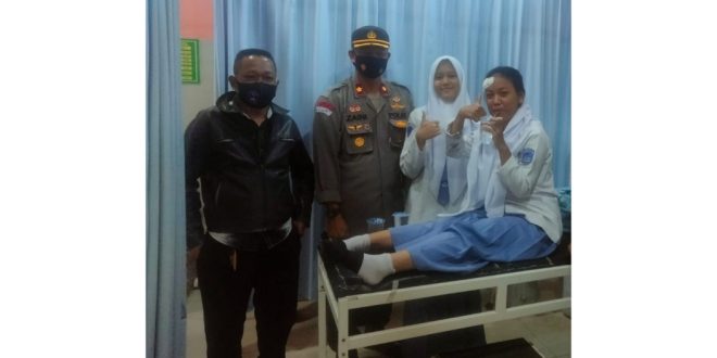 “Keduanya saya lihat jatuh dijalan, setelah itu langsung saya bawa ke Puskesmas, dan dicek keadaannya alhamdulillah setelah diperiksa perawat, keduanya hanya mengalami luka ringan”, Terang Kapolsek.