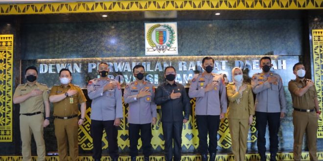 Bandar Lampung (SUNDALANEWS.COM) —Kabid Humas Polda Lampung, Kombes Pol. Zahwani Pandra Arsyad di dampingi Kasubbid Penmas (Kepala Sub Bidang Penerangan Masyarakat) AKBP Rahmat Hidayat beserta personil staf Bidhumas, berkunjung ke Kantor DPRD Provinsi Lampung, Selasa (18/1/2022) pagi.