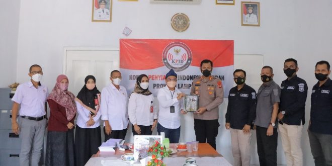 Bandarlampung (SUNDALANEWS.COM) — Kabid Humas Polda Lampung Kombes Pol Zahwani Pandra Arsyad, di dampingi Kasubbid Penmas, AKBP Rahmat Hidayat, Kasubbid PID, AKBP Marmin dan beberapa personil staf Bid Humas, bertandang ke kantor KPID Lampung, dalam rangka mempererat tali silaturahmi yang selama ini sudah terjalin dengan baik dan harmonis, Rabu (19/1/2022) pagi.