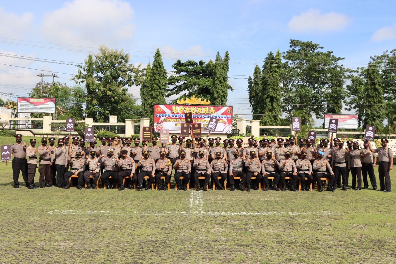 Ke 56 personil yang mendapat penghargaan kenaikan pangkat itu terdiri dari 2 personil mendapat kenaikan pangkat pada golongan perwira menengah (Kompol), 7 personil golongan PAMA serta 47 Brigadir