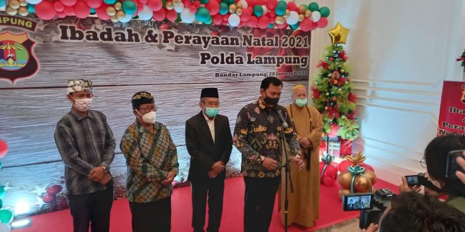 Bandar Lampung (SUNDALANEWS.COM) – Polda Lampung menggelar perayaan Natal 2021 bertema “Kasih Persaudaraan Tulus Ikhlas Dalam Menjalankan Tugas Polri Yang Presisi”, Jumat, (28/1/2022) malam.