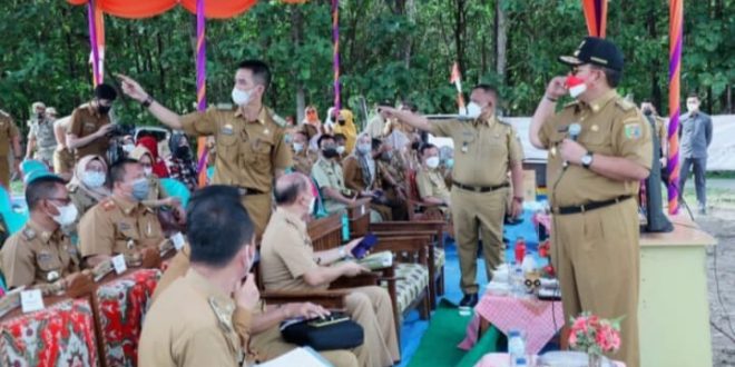 LAMPUNG SELATAN (Sundalanews.com): Bupati Lampung Selatan Nanang Ermanto mendampingi kunjungan kerja Gubernur Lampung Arinal Djunaidi, yang meninjau lokasi alternatif lahan Kawasan Industri Way Pisang Lampung Selatan, Selasa (4/1/2022). Kawasan Industri Lampung Way Pisang di Desa Marga Catur, Kalianda, Lampung Selatan, merupakan salah satu dari empat Kawasan Industri Lampung yang masuk dalam RPJMN periode tahun 2020-2024.