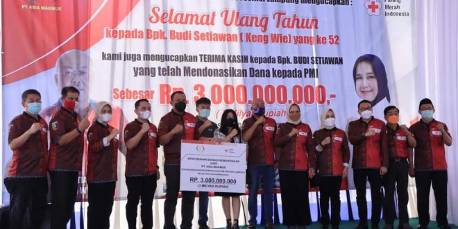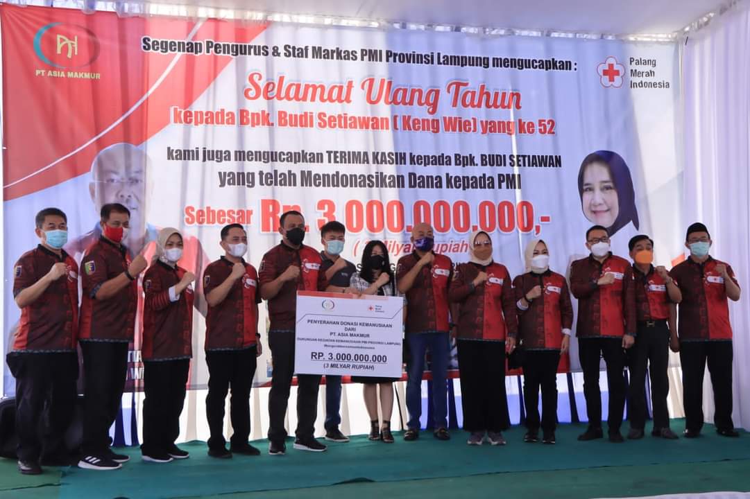 Direktur PT. Asia Makmur, Budi Setiawan yang juga tercatat sebagai pengurus PMI Provinsi Lampung memberikan donasi dana kemanusiaan sebagai bentuk ungkapan syukur dan kepeduliannya pada kegiatan sosial dan kemanusiaan yang dilaksanakan PMI Provinsi Lampung.
