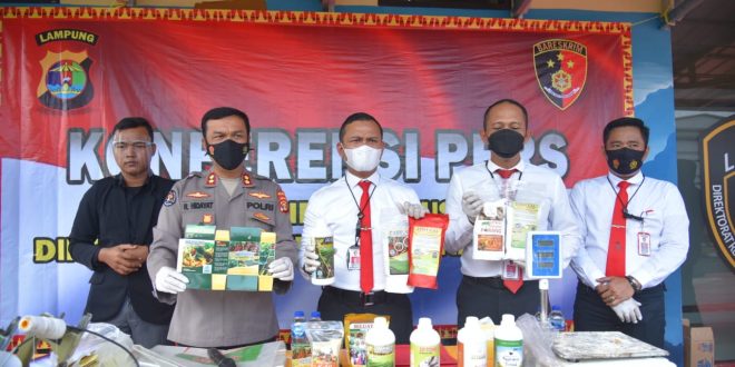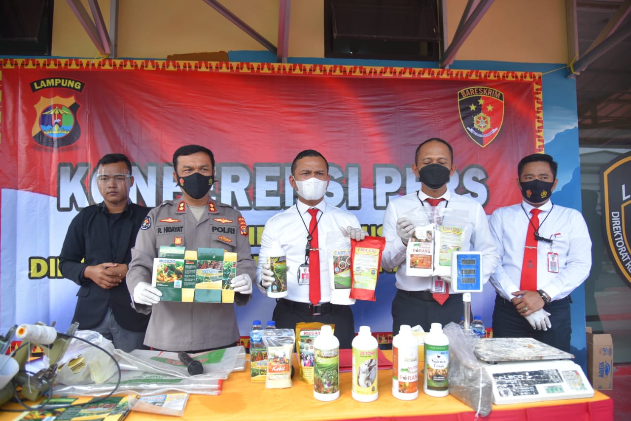 “Petugas berhasil mengungkap peredaran pupuk tanpa izin penjualan yang tidak terdaftar di Kementerian Pertanian RI. PT. GAJ memasarkan pupuk dengan kisaran harga Rp100 ribu dan diedarkan di Kabupaten Pringsewu sejak tahun 2019,” kata Popon Ardianto Sunggoro saat Konferensi Pers di Mapolda Lampung.