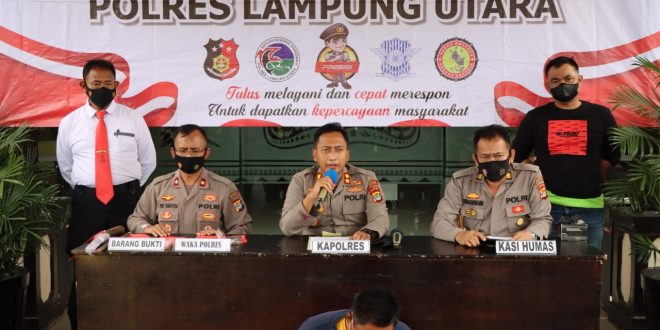 Hal ini di sampaikan Kapolres Lampung Utara AKBP Kurniawan Ismail S.H., S.I.K., M.I.K. saat menggelar konferensi pers, Senin (31/1/2022) bertempat di koridor utama Mapolres setempat
