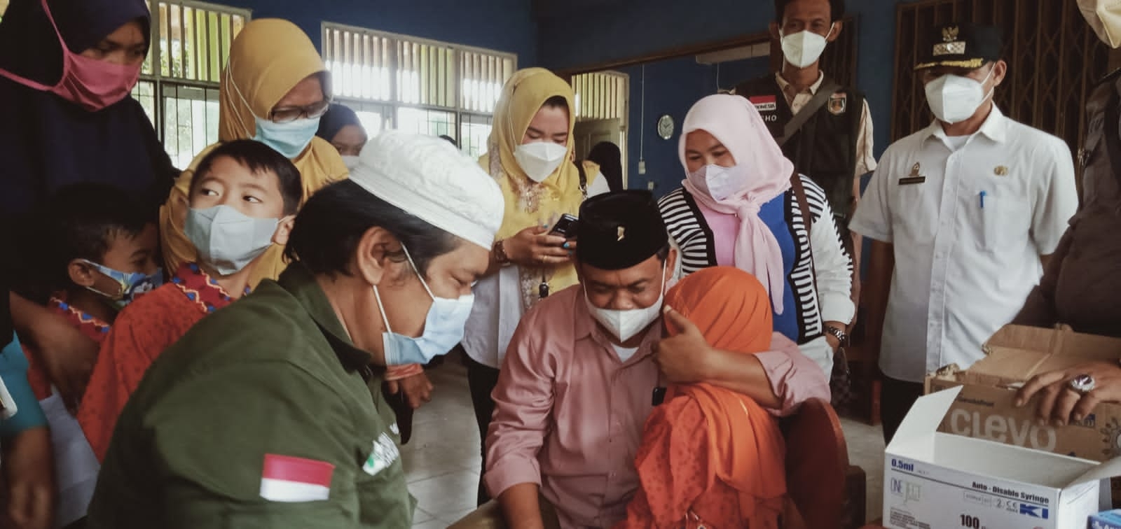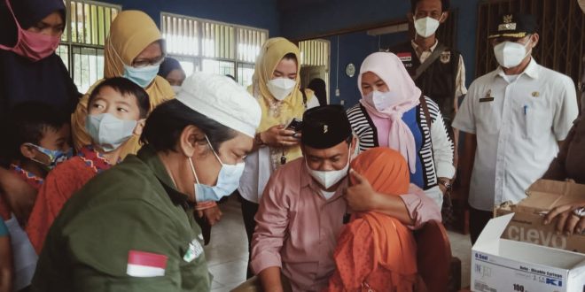SUNDALANEWS.COM – Ketua DPRD Lampung Tengah,Sumarsono membagi kan susu kepada santri usai mengikuti vaksinasi ,di pondok pesantren Daruusaadah,Seputih Jaya ,Lampung Tengah, Kamis(13/01/2022).