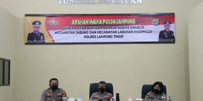 Dalam arahannya Wakapolda Lampung mengatakan, penempatan Bintara Remaja Kuota khusus Kecamatan Labuhan Maringgai dan Kecamatan Jabung merupakan salah satu bentuk komitmen moral dan keseriusan mewujudkan Polri yang Presisi.
