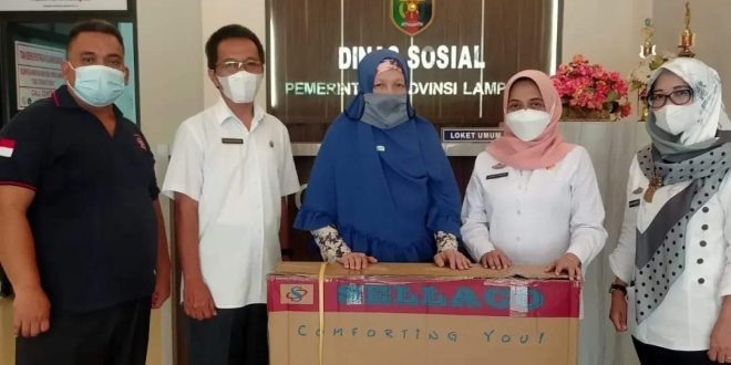 Bandar Lampung (SUNDALANEWS.COM) – Kepala Dinas Sosial Provinsi Lampung melalui Kabid Rehabilitasi Sosial Dra. Ratna Fitriani, menyerahkan bantuan kursi roda dari Gubernur Lampung, untuk Nurlaila, yang diterima oleh ibunda Nurlaila, yakni Ibu H. Suhada. Penyerahan berlangsung di Kantor Dinas Sosial Provinsi Lampung, Rabu (16/2/2022).