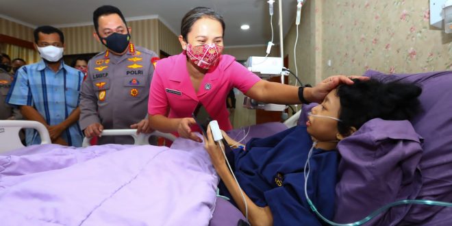 Sigit beserta istri sekaligus Ketua Umum Bhayangkari Juliati Sigit Prabowo, menjenguk Sinta Aulia untuk melihat kondisinya secara langsung saat menjalani perawatan di Rumah Sakit (RS) Polri, Kramat Jati, Jakarta Timur, Minggu (20/2/2022).