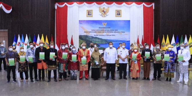 Menurut Menteri Lingkungan Hidup dan Kehutanan (LHK) RI, Siti Nurbaya Bakar, pada hari ini dilakukan penyerahan sertifikat Kehutanan secara serentak di 19 Provinsi Se-Indonesia, dimana di Provinsi Lampung diserahkan 66 SK Kehutanan Sosial dengan luas lahan 11.309,87 Hektar yang meliputi 6 UPTD KPH, yakni Batutegi, Gedong Wani, Gunung Balak, Pesawaran, Tahura Wan Abdul Rahman, Way Pisang.