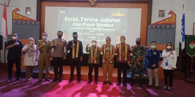 Bandar Lampung (sundalanews.com) – Gubernur Lampung yang diwakili Staf Ahli Gubernur Saiful Darmawan didampingi Kepala Dinas Kominfotik Provinsi Lampung, Ganjar Jationo, SE. M.AP menghadiri acara serah terima jabatan dan pisah sambut Kepala RRI Bandar Lampung, bertempat di Studio 2 RRI Bandar Lampung, Senin (21/02/2022).