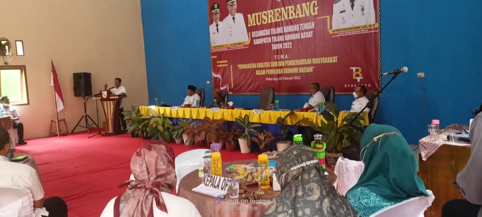 TUBABA (SUNDALANEWS.COM) – Wakil Bupati tubaba Fauzi Hasan, menghadiri Musyawarah Perencanaan Pembangunan (Musrenbang) Kecamatan Tulangbawang Tengah tahun 2022 di Balai Tiyuh Mulya Jaya kecamatan Tuba Tengah kabupaten Tulang Bawang Barat, Rabu (02/02/2022).