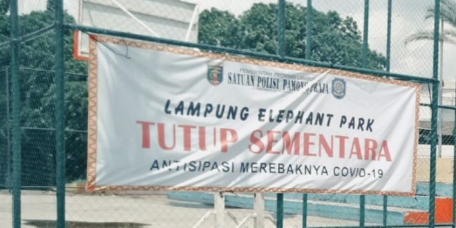 BANDAR LAMPUNG (Sundalanews.com) : Taman Gajah atau biasa juga disebut Lampung Elephant Park yang terletak di Kecamatan Enggal, Kota Bandar Lampung, ditutup sementara. Hal ini terlihat dari beberapa spanduk besar yang terpasang di depan Taman Gajah atau terlihat dari Jalan Jenderal Sudirman, Senin (21/2/2022).