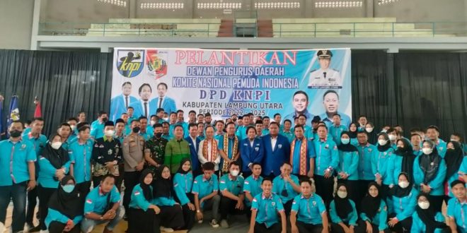 Lampung Utara (sundalanews.com) – Pelantikan Dewan Pengurus Daerah (DPD) Komite Nasional Pemuda Indonesia (KNPI) Kabupaten Lampung Utara (Lampura) dengan mengusung tema ‘Reposisi KNPI Menuju Organisasi Pemuda Yang Progresif dan Visioner’ masa bakti 2022-2025 secara resmi digelar. Kegiatan berlangsung di GOR Sukung Kotabumi. Kamis (31/3)