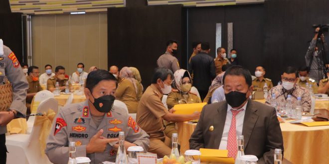 Bandarlampung (sundalanews.com) – Kapolda Lampung Irjen Pol Hendro Sugiatno menghadiri high level marketing rapat koordinasi Tim Pengendali Inflasi Daerah (TPID) Provinsi Lampung bersama forkopimda, dinas dan instansi terkait, dalam rangka persiapan menjelang bulan suci Ramadhan dan Hari Raya Idul Fitri 1443 H dan desiminasi komoditi/produk usaha unggulan, di ballroom hotel Novotel Bandar Lampung, Senin (28/3/2022) pagi yang dibuka langsung oleh Gubernur Lampung Arinal Djunaidi.
