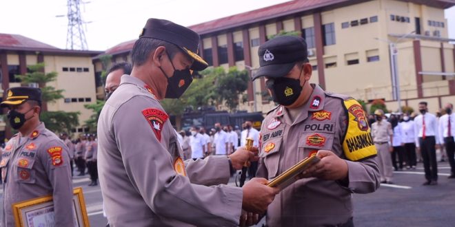 BANDAR LAMPUNG (sundalanews.com) – Sebanyak 80 personil Polda Lampung mendapat penghargaan dari Kapolda Lampung Irjen Pol Hendro sugiatno, atas prestasi dan dedikasinya dalam mengungkap kasus-kasus tindak pidana narkoba dan kasus menonjol yang terjadi di wilayah hukum Polda Lampung.