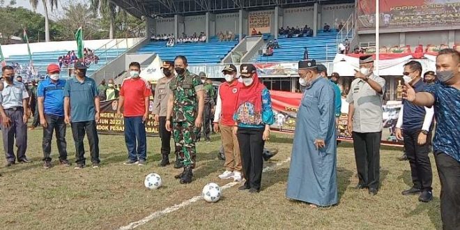 BANDARLAMPUNG(SUNDALANEWS.COM) – Wali Kota Bandar Lampung, Eva Dwiana membuka Liga Santri PSSI Piala Kepala Staff TNI Angkatan Darat (KASAD) tahun 2022, di Stadion Pahoman, Sabtu (26/3/2022). Even dilaksanakan di tingkat Kodim 0410/Kota Bandar Lampung.