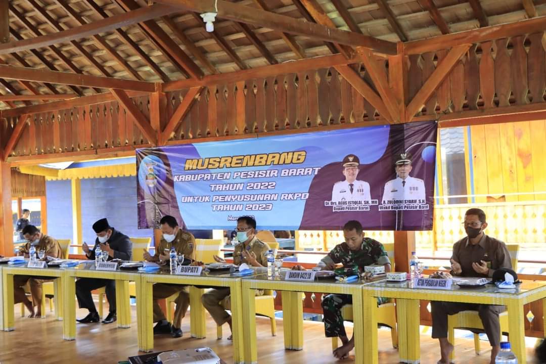 Pesisir Barat (sundalanews.com) – Saat membuka Musrenbang Kabupaten Pesisir Barat, Gubernur Lampung dalam sambutannya yang disampaikan oleh Asisten Pemerintahan & Kesejahteraan Rakyat, Qudrotul Ikhwan, menyampaikan bahwa untuk mendukung kemajuan wilayah dan meningkatkan kualitas penduduk, saat ini Pemerintah Provinsi Lampung memiliki program/kegiatan pembangunan strategis yang perlu disinergikan dengan Pemerintah Kabupaten Pesisir Barat, antara lain: