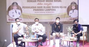 BANDARLAMPUNG (sundalanews.com) – Pemerintah Provinsi Lampung menggelar kegiatan Dialog bersama Pegiat Media Sosial di Lampung, kegiatan dilaksanakan di Ruang Pertemuan Hotel Batiqa, Bandar Lampung, Rabu (16/03). Kegiatan yang digelar dalam rangka memeriahkan HUT Provinsi Lampung Ke-58 tersebut dihadiri oleh 40 orang Pegiat Media Sosial Se-Provinsi Lampung dari berbagai platform seperti …