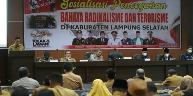 KALIANDA (sundalanews.com) – Dalam rangka pencegahan tindakan Radikalisme dan Terorisme di lingkungan Kabupaten Lampung Selatan, Pemerintah Kabupaten (Pemkab) menggelar sosialisasi pencegahan Paham Radikalisme dan Terorisme kepada para camat dan kepala Desa se-Kabupaten Lampung Selatan.