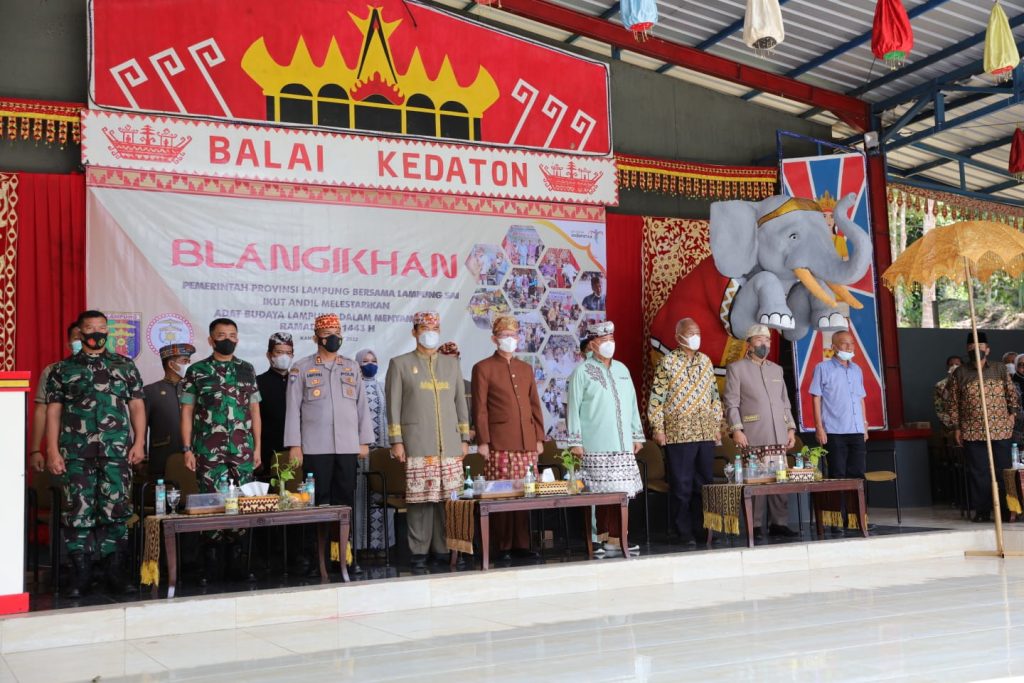 BANDARLAMPUNG (sundalanews.com) – Dalam rangka menyambut Bulan Suci Ramadhan 1443 H, Pemerintah Provinsi Lampung bersama DPP Lampung Sai menggelar tradisi masyarakat Lampung Blangikhan di Bumi Kedaton Resort, Batu Putu, Teluk Betung Utara, Kamis (24/3/2022).