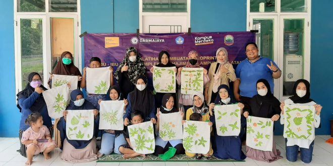 Lampung Selatan (sundalanews.com) – Dosen Institut Informatika dan Bisnis (IIB) Darmajaya memberikan Pelatihan Ecoprint untuk Ibu-ibu PKK Perumahan Bumi Citra Lestari (BCL) Hajimena, Lampung Selatan, Sabtu (19/3/22).
