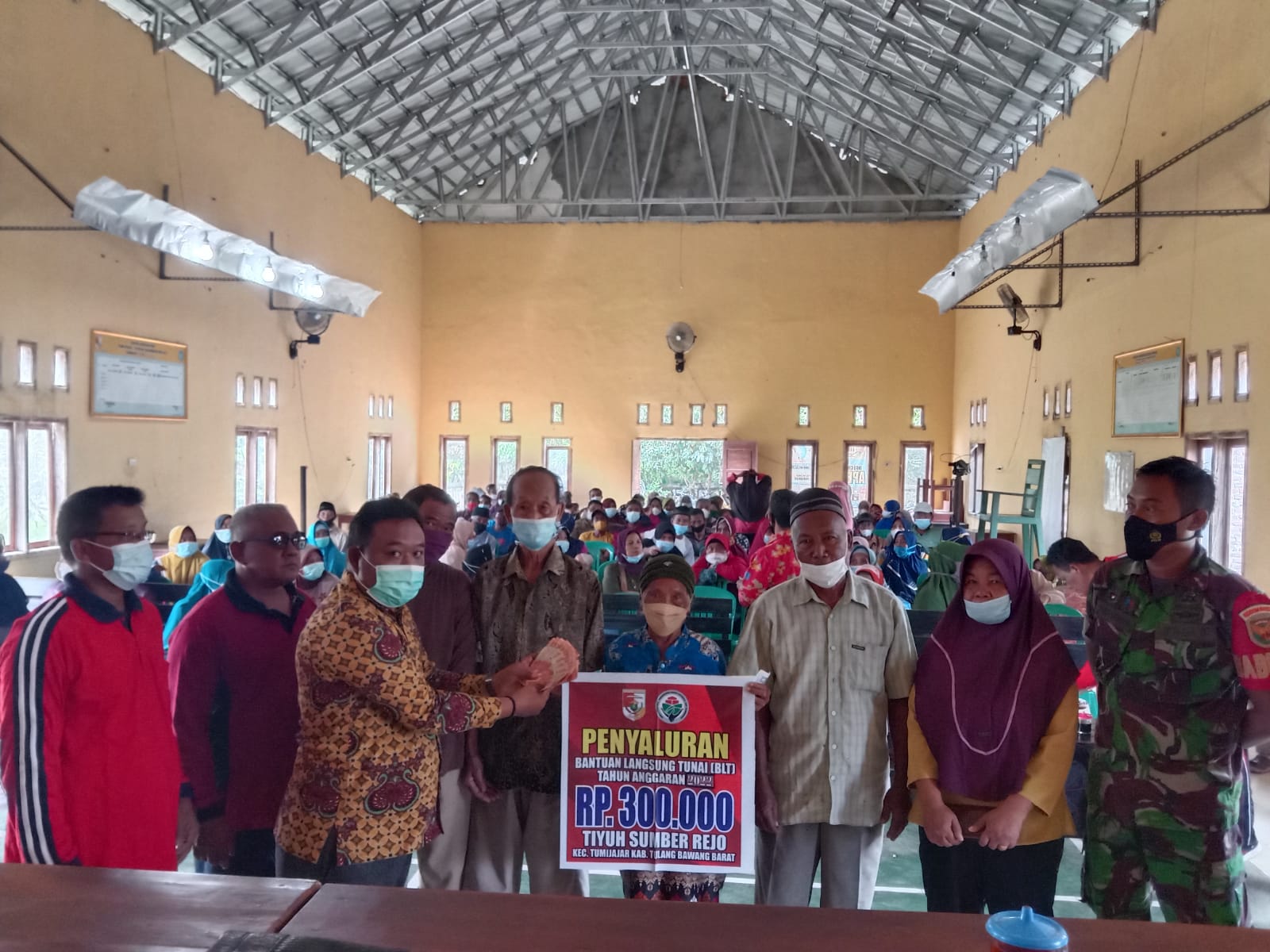 Kepalo tiyuh menjelaskan, pembagian BLT ini diberikan kepada masyarakat Tiyuh Sumber rejo khusus nya masyarakat yang kurang mampu sebanyak 100 KPM (KK) menerima bantuan ini jumlah nya 900 ribu per tiga bulan.