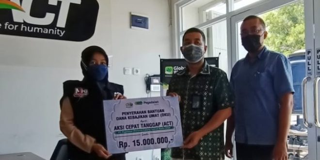 Bandarlampung (sundalanews.com) — PT Pegadaian Syariah Cabang Raden Intan Lampung menyalurkan bantuan untuk program Ramadan ACT Lampung. Bantuan yang disalurkan Rp. 15.000.000 ( Lima Belas Juta Rupiah) merupakan Dana Kebajikan Umat (DKU) yang sudah dihimpun oleh Pegadaian Syariah dan diperuntukan untuk program Ramadhan 1443 H. Insya Allah dana ini akan disalurkan untuk membantu kegiatan berbagi pangan Ramadan untuk masyarakat prasejahtera di Lampung.
