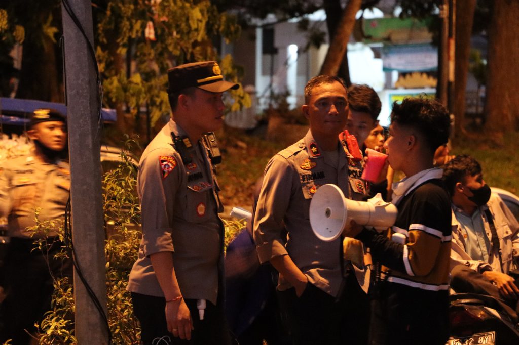Kapolres Lampung Selatan hingga petang menunggu massa aksi balik dengan tertip dan berbuka puasa bersama dijalanan. (Dama)