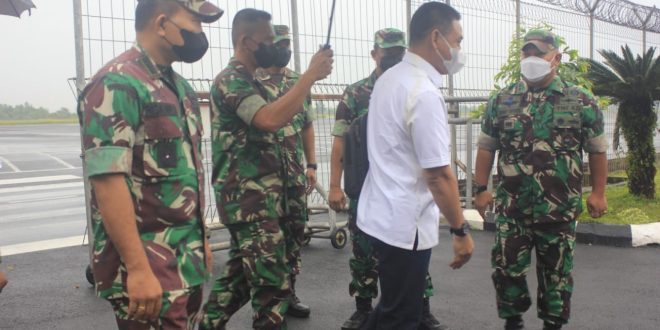Peaisir Barat (sundalanews.com) – Komandan Kodim 0422/Lampung Barat Letnan Kolonel Czi Anthon Wibowo menyambut kedatangan Ketua Tim Wasev TMMD KE-113 Brigjen Tni Irhamwaroihan ( irsus itjenad) beserta ibu di Bandara Radin Inten II, Senin (30/05).