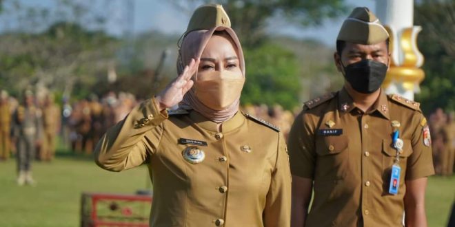Tubaba (sundalanews.com) – Memasuki hari kerja efektif pertama sebagai Penjabat Sementara (Pj) Bupati Kabupaten Tulang Bawang Barat (Tubaba) Dr. Zaidirina, S.E., M.Si., memimpin apel pagi di halaman Kantor Sekretariat Daerah, Senin (23/5/2022).