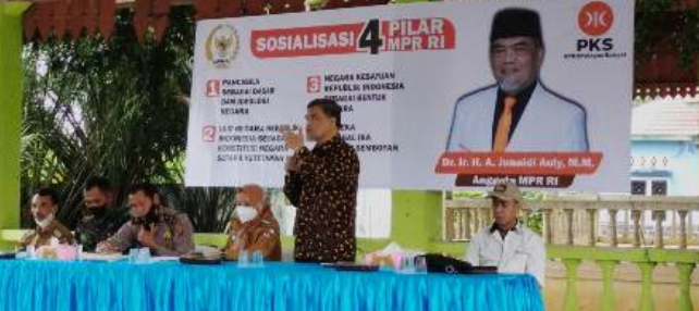 LAMPUNG (sundalanews.com)- Anggota MPR RI Fraksi PKS Junaidi Auly melakukan sosialisasi empat pilar di Lampung Utara. Sosialisasi itu bertajuk “Indahnya Kolaborasi dalam kebhinekaan” ,Selasa (31/05/2022) .