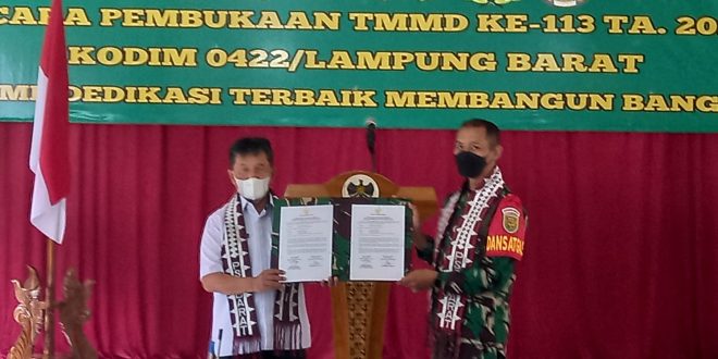 Pesisir Barat (sundalanews.com) – Wakil Bupati Pesisir Barat, A.Zulqoini Syarif membuka program Tentara Manunggal Membangun Desa (TMMD) ke-113 tahun 2022 Kodim 0422/ lampung Barat. Pembukaan dilaksanakan di SMP N 2 Bengkunat, Pekon Suka Maju Kecamatan Ngaras Kabupaten Pesisir Barat Provinsi Lampung, Rabu (11/5/2022).