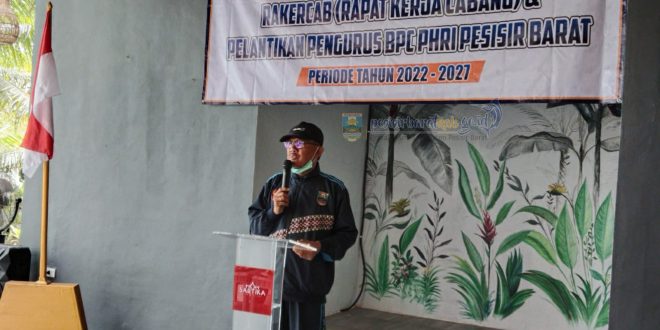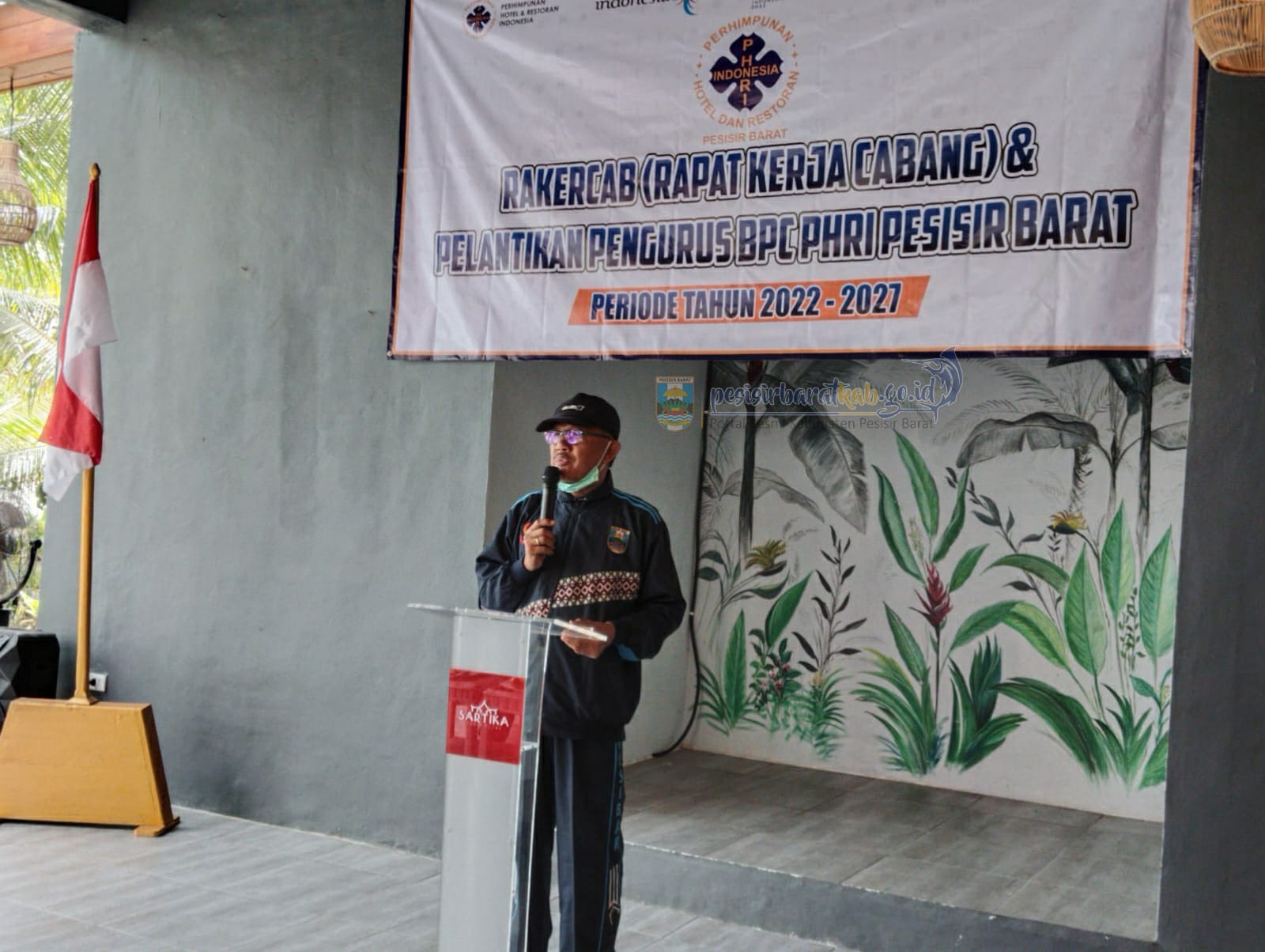 Pesisir Barat (sundalanews.com) – Bupati Pesisir Barat Dr. Drs. Agus Istiqlal, S.H.,M.H meminta dukungan penuh dari PHRI dalam menyukseskan Even Krui Pro Qs 5000. Halini disampaikan Agus Istiqlal dalam Menghadiri Rapat Kerja Cabang (Rakercab) dan Pelantikan Pengurus BPC Perhimpunan Hotel dan Restoran Indonesia (PHRI) Pesisir Barat Tahun 2022-2027 yang berlokasi di Villa Desa Pekon Way Redak Kecamatan Pesisir Tengah, Jumat (03/06/2022).