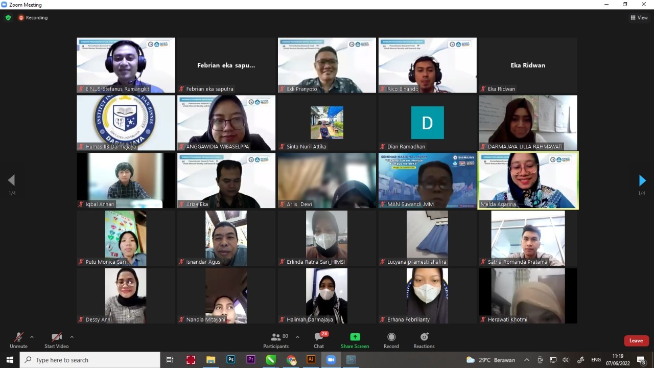 BANDARLAMPUNG (sundalanews.com) – Dosen Prodi Manajemen Institut Informatika dan Bisnis (IIB) Darmajaya bersama Dosen Universitas Bina Nusantara (Binus) membagikan ilmunya dalam webinar Pengabdian Masyarakat pada Selasa (7/6/22).