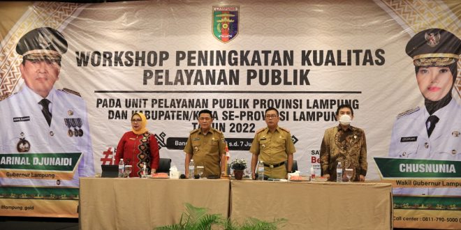 Hal tersebut disampaikan Assisten Adminitrasi Umum Pemerintah Provinsi Lampung Minhairin saat mewakili Gubernur dalam acara Workshop Peningkatan Kualitas Pelayanan Publik pada Pemerintah Provinsi dan Kabupaten/Kota se-Provinsi Lampung Tahun 2022 di Ballroom Hotel Emersia, Senin (6/6/2022).