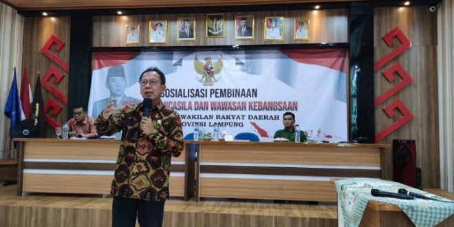 Bandar Lampung (sundalanews.com) – Ketua DPRD Lampung Mingrum Gumay SH., MH menggelar sosialisasi ideologi pancasila dan wawasan kebangsaan di SMA 1 N Bandar Agung, Kecamatan Terusan Nyunyai Lampung Tengah, Jum’at (18/06/2022 ).
