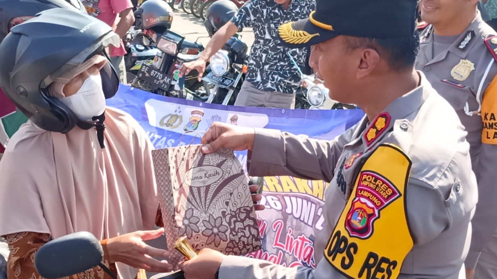 Kita bagikan kepada mereka yang patuh aturan dalam berlalu lintas, seperti melengkapi diri dengan membawa surat kendaraan saat berkendara, memiliki SIM, menggunakan helm berstandar SNI. “imbuh AKBP Kurniawan