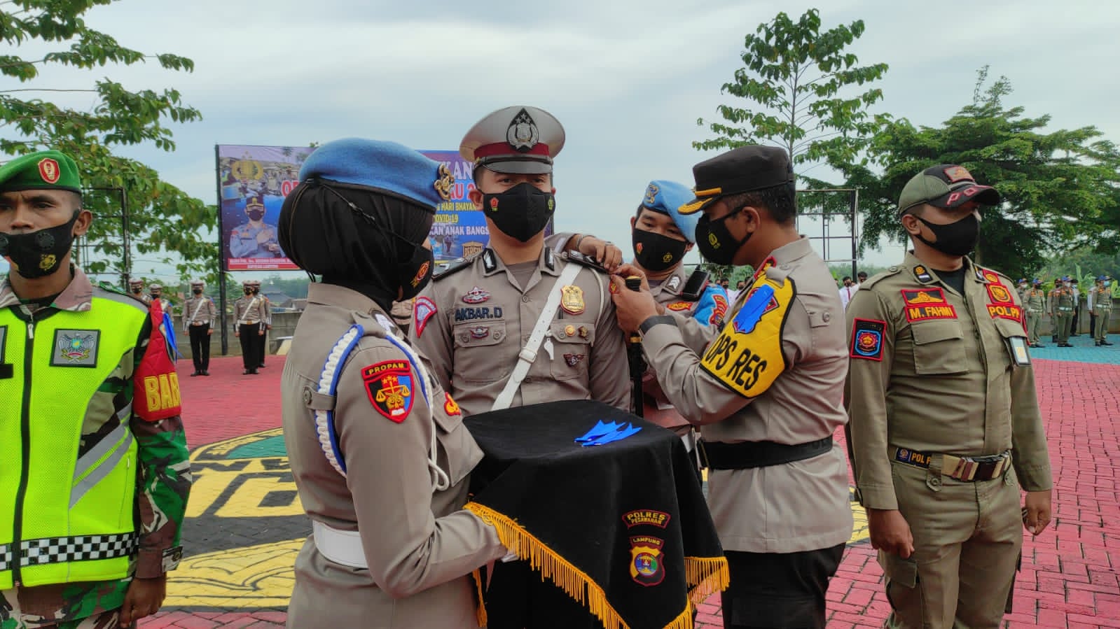 Turut hadir juga Asisten III Adminum Kabupaten Pesawaran Bpk Ir. Heriansyah, Dandim 0421/LS Letkol Inf Fajar Akhirudin S.I.P. M.Si, Wakapolres Pesawaran Kompol Muhammad Riza T, S.H., M.H, Kasi Intel Kejari Pesawaran Sdr. Andi Pramono., S.H, Hakim Muda Pengadilan Negeri Gedong Tataan Sdr. Dewa Giri Sentosa,. S.H, Perwira Brigif 4 Mar/BS Lettu Mar Yogi Eka lendra, DPRD Kabupaten Pesawaran Sdr. Bambang Suheri, Kasat Pol PP Bpk Drs. Effendi,. M.M, Kadishub Pesawaran Bpk Ahmad Syafei, S.Pd., M.Pd, Kapolsek Jajaran Polres Pesawaran dan Para Pejabat Utama (PJU) Polres Pesawaran.