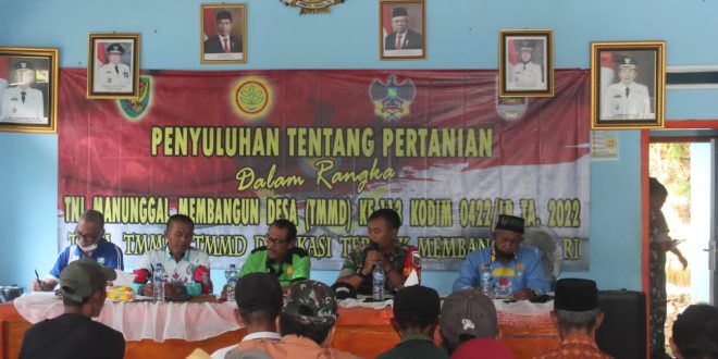 Pesisir Barat (sundalanews.com) – Satuan tugas TNI Manunggal Masuk Desa (TMMD) ke-113 Kodim 0422/LB menggelar kegiatan non fisik berupa penyuluhan pertanian dan perkebunan kepada masyarakat di Pekon Sukamaju Kec. Ngaras Kab. Pesisir Barat, Jumat (03/06).
